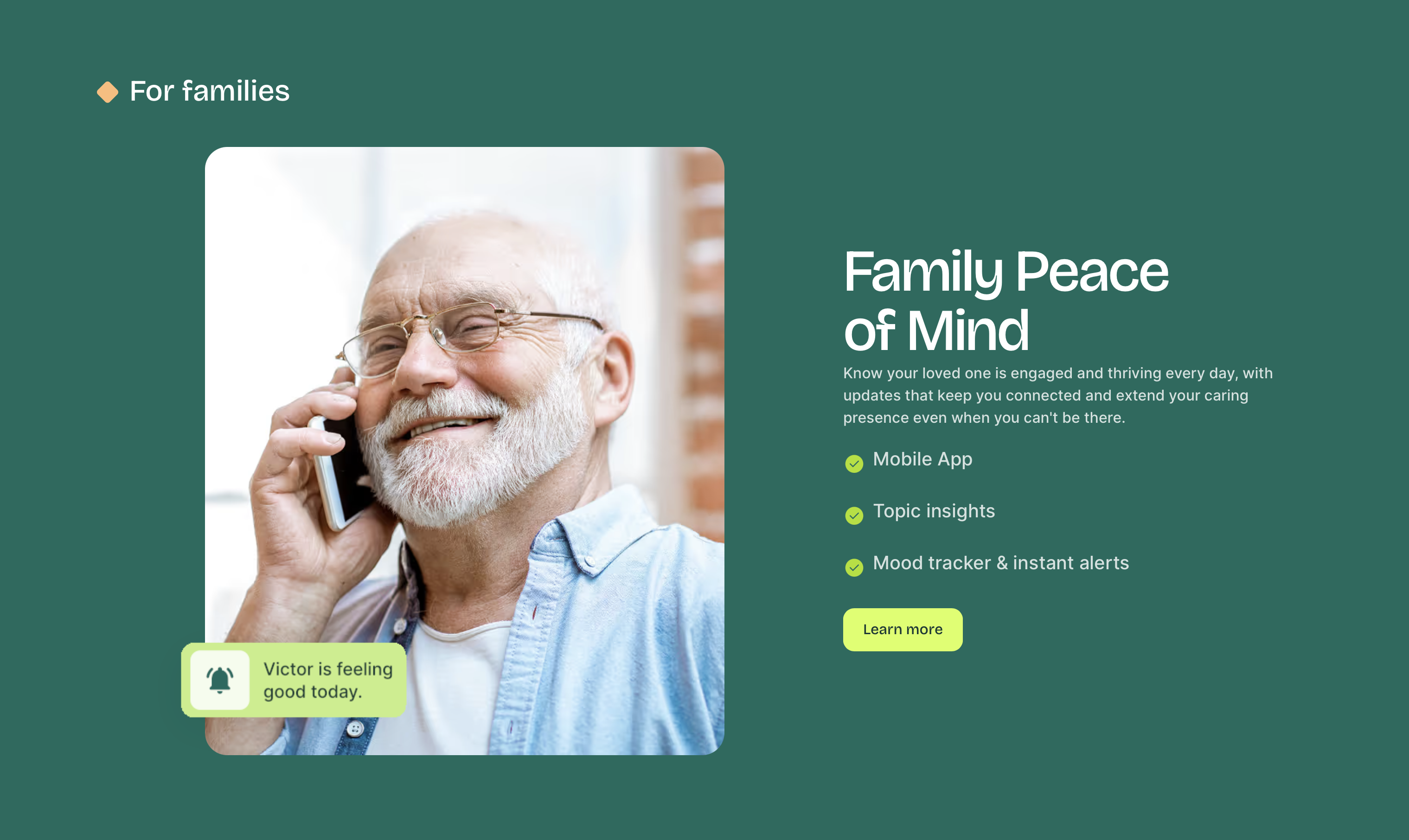 為長者提供的每日 AI 電話對話,24/7 全天候服務