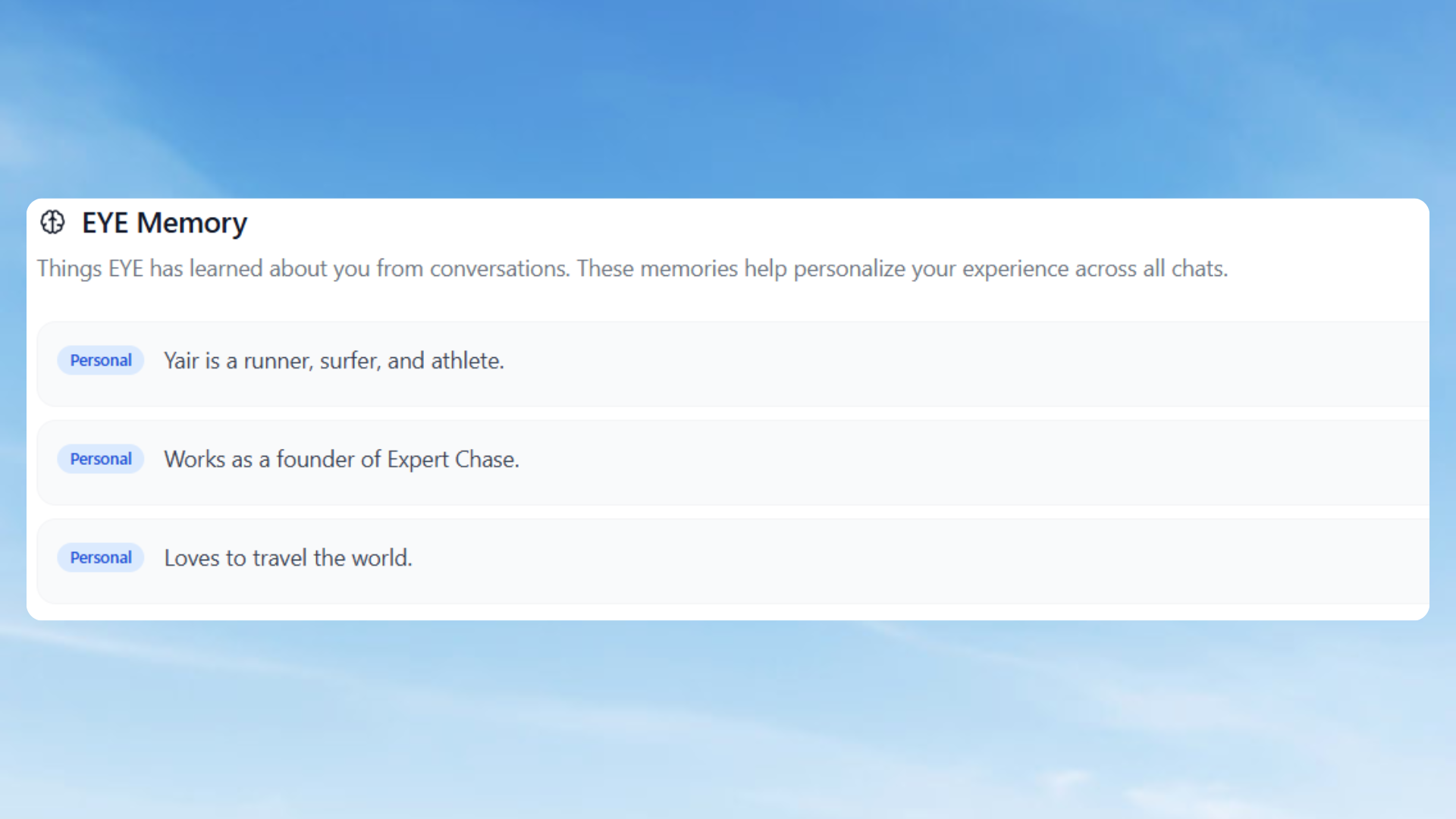 Expert Chase 在 Product Hunt 上推出了 E.Y.E.,這是一個旨在將人工智慧融入人類日常生活與工作流程的平台,並採用了 Cursor、Supabase 和 Vercel 等現代開發工具。