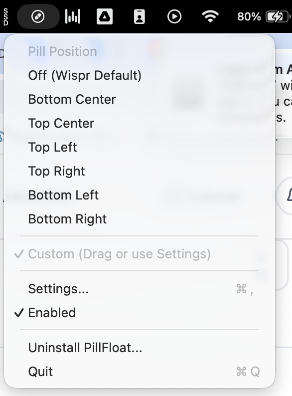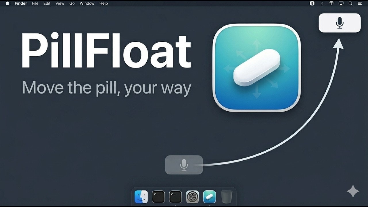 PillFloat 是一款實用工具,讓您可以將螢幕上的 Wispr Flow 懸浮視窗移動到任何位置,提升介面使用的靈活性。