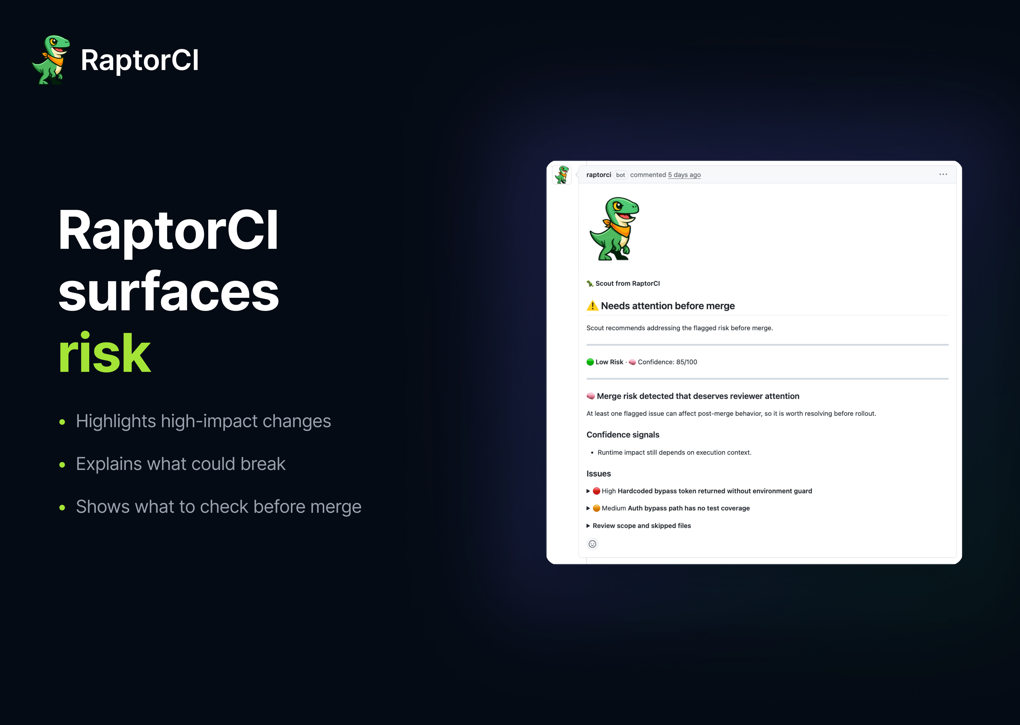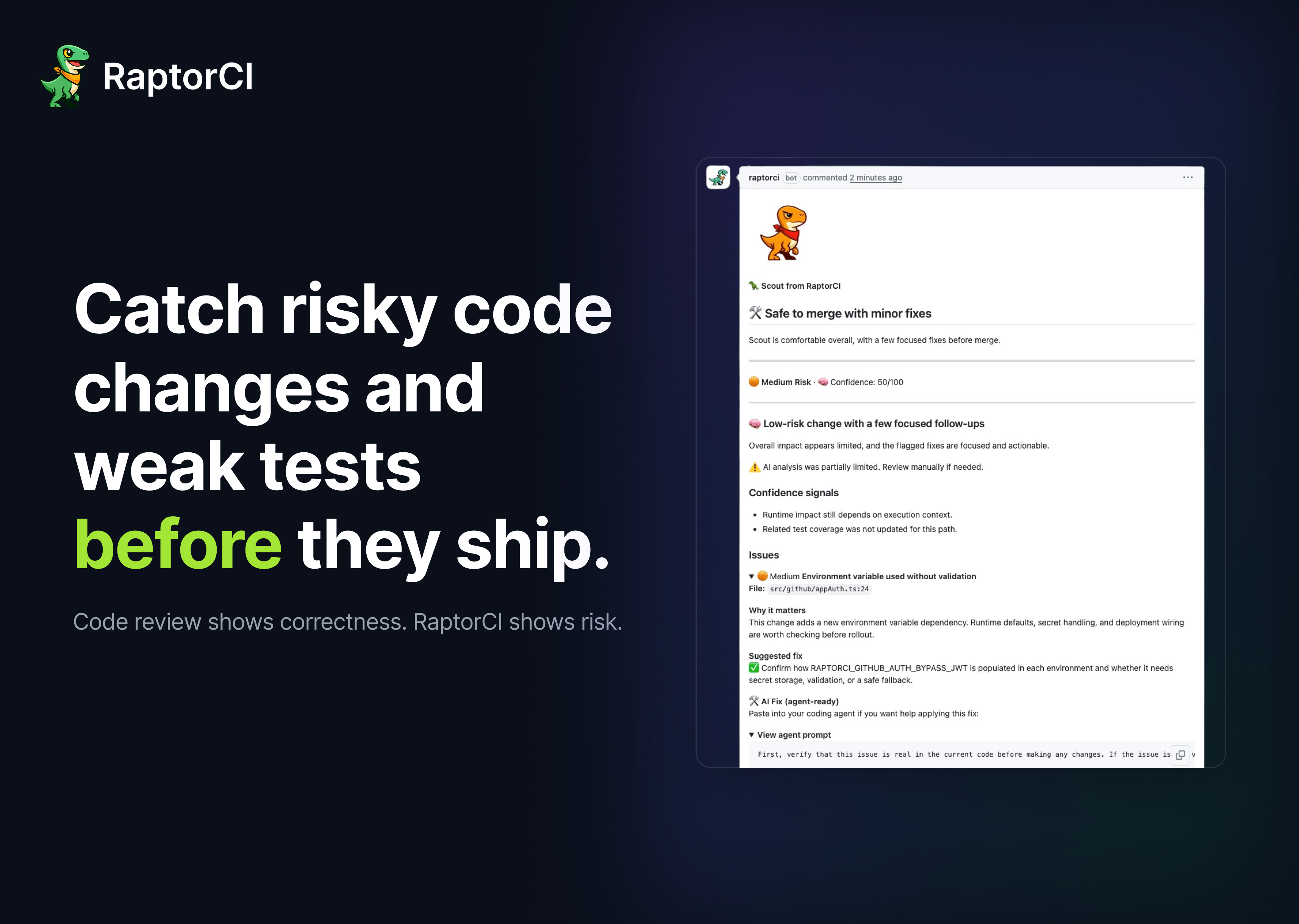 RaptorCI:在發佈前攔截高風險程式碼變更與脆弱測試