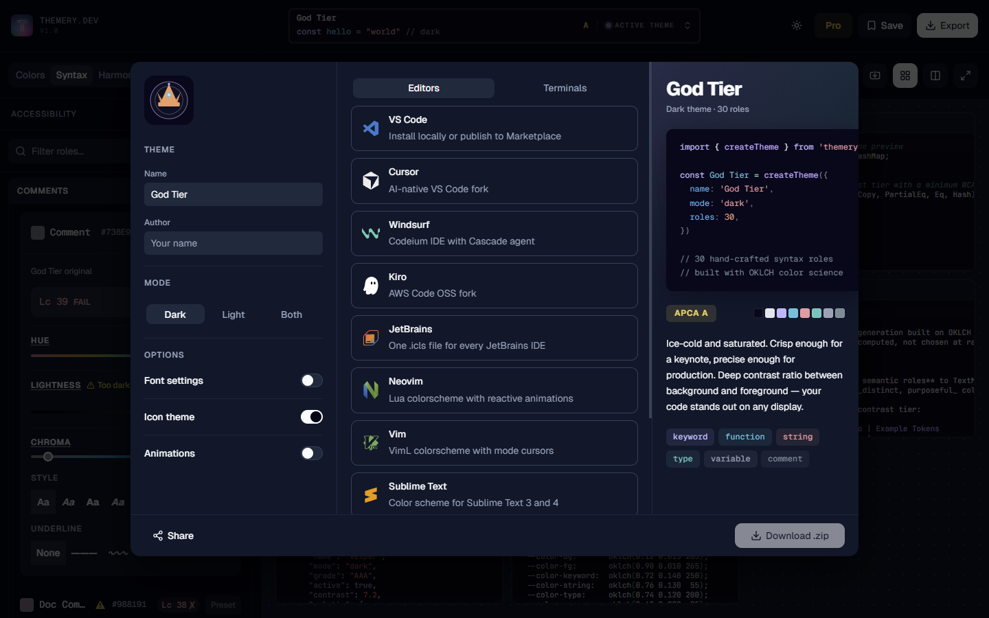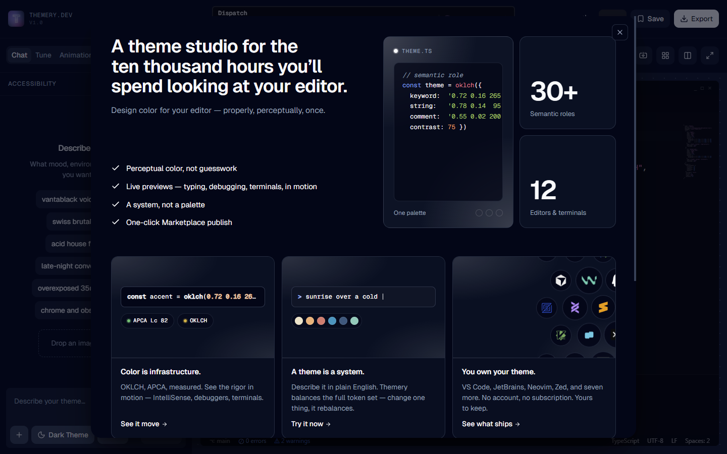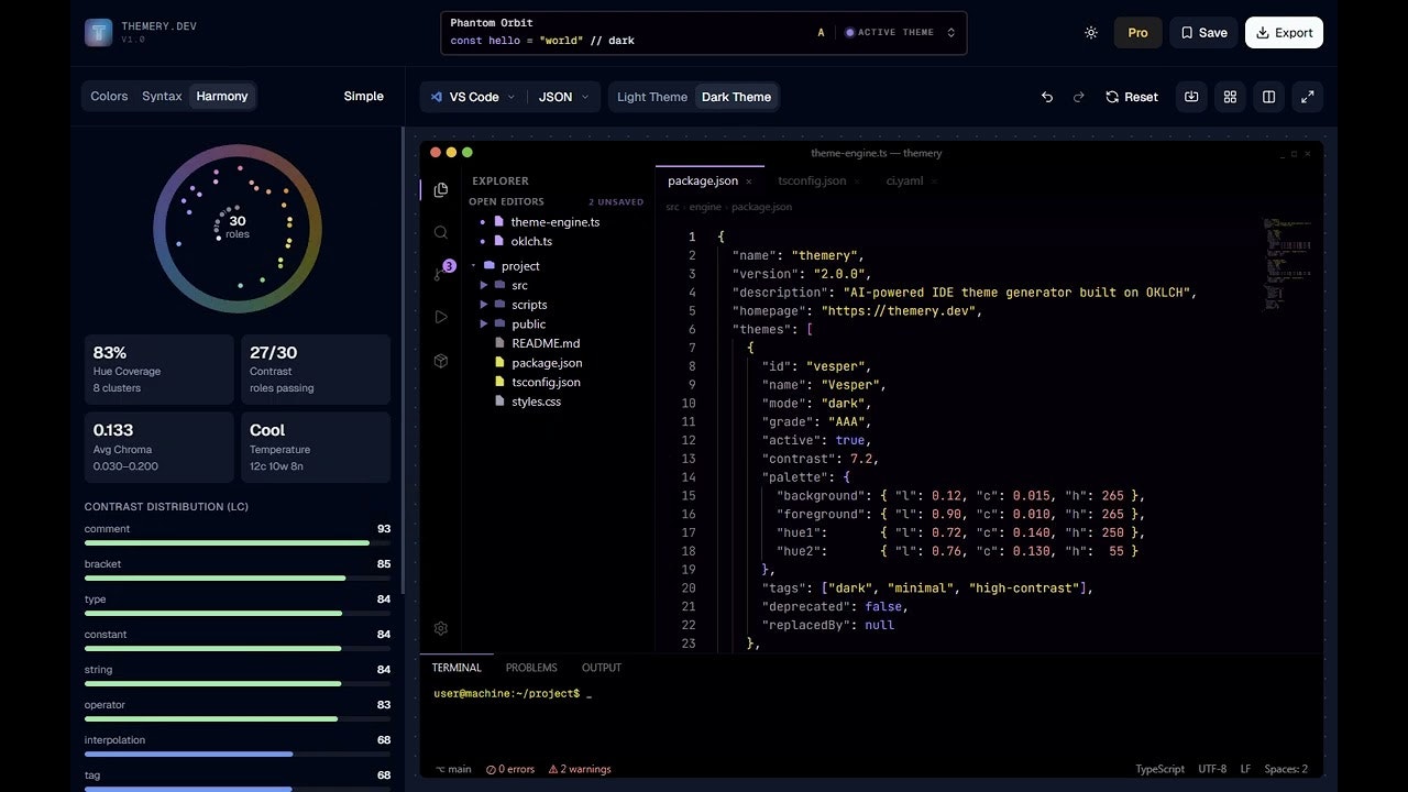 Themery 是一款專為開發者設計的工具,旨在幫助您為整合開發環境(IDE)打造並自定義精美的主題。